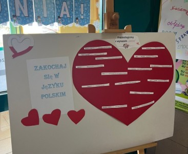 Powstało drzewo z polskimi frazeologizmami oraz serce z hasłem "ZAKOCHAJ SIĘ W JĘZYKU POLSKIM"
